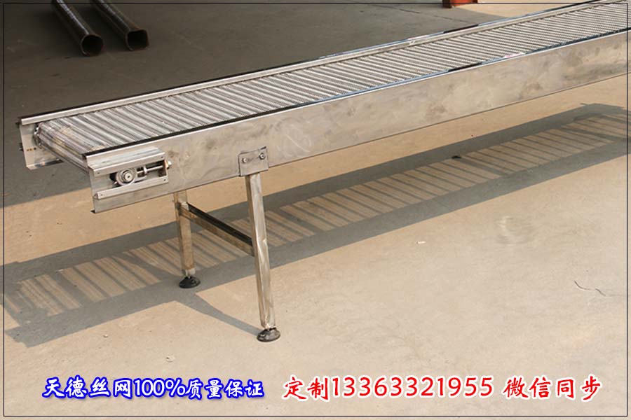一臺(tái)實(shí)用的網(wǎng)帶輸送機(jī)它長(zhǎng)度、寬度等參數(shù)都是有一定比例關(guān)系的一般來(lái)講網(wǎng)帶輸送機(jī)的寬度不能超過(guò)2米,長(zhǎng)度不能超越30米。如果輸送物料體積大、密度大那就要在網(wǎng)帶下方加裝軌道支撐;如果輸送線比較長(zhǎng)的話把網(wǎng)帶輸送機(jī)分節(jié)來(lái)制作而不能做成一條輸送線,因?yàn)榫W(wǎng)帶輸送機(jī)超過(guò)30米的話輸送網(wǎng)帶在牽引力下延伸率太大,造成輸送機(jī)脫軌或者跑偏。