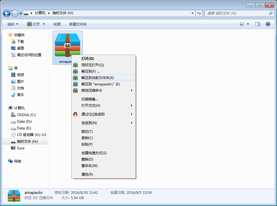 步驟一:選擇右鍵解壓到當前文件夾即amapauto文件夾,全選并右鍵解壓到當前文件夾即amapauto文件夾。