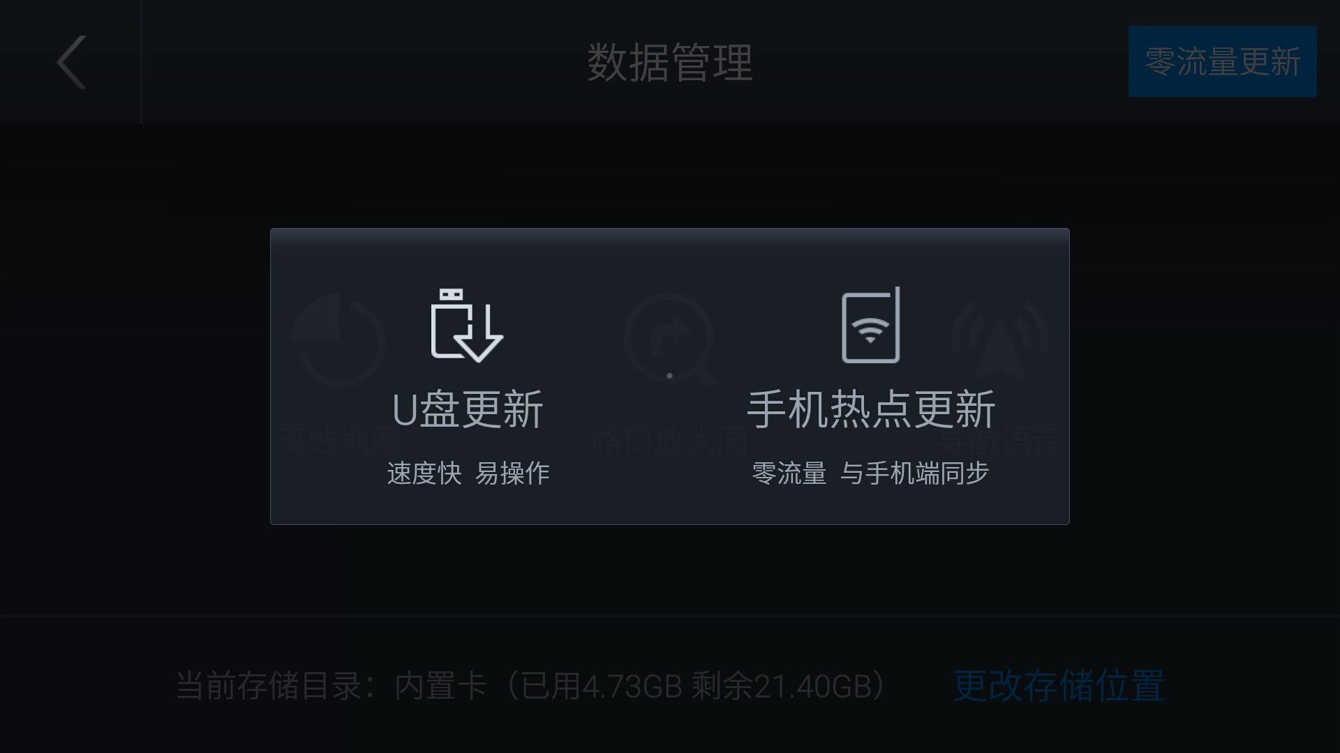 步驟二:將解壓后的數據存放于U盤根目錄,進入【離線數據】頁面,點擊零流量更新,選擇【U盤更新】。