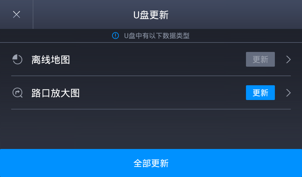 步驟三:車機將自動識別您U盤中的數據,您可根據需要選擇需要更新的數據。