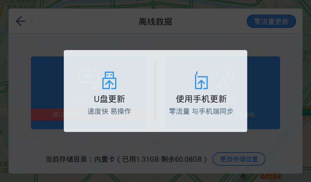 步驟二:將解壓后的數據存放于U盤根目錄,進入【離線數據】頁面,點擊零流量更新,選擇【U盤更新】。